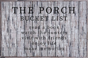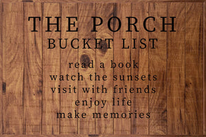 The Porch Bucket List 18x12 Polystyrene Wall Décor / Indoor or Outdoor Sign