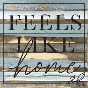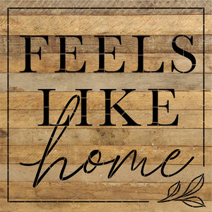 Feels like home 28x28 Reclaimed Wood Wall Sign Second Nature by Hand product are Made in the USA by skilled craftsmen in WI. We source distressed reclaimed materials throughout North America that ensures no two Second Nature by Hand signs in the world are the same. The wood for this sign may have come from a ship yard, old factory or a huge variety of other sources. Buying reclaimed wood products is good for the environment. Due to the reclaimed nature of this product, colors and wood tones/features may vary slightly.