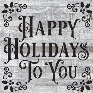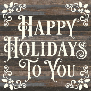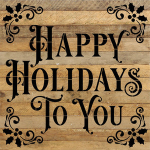 Happy Holidays to You 28x28 Reclaimed Wood Sign Second Nature by Hand product are Made in the USA by skilled craftsmen in WI. We source distressed reclaimed materials throughout North America that ensures no two Second Nature by Hand signs in the world are the same. The wood for this sign may have come from a ship yard, old factory or a huge variety of other sources. Buying reclaimed wood products is good for the environment. Due to the reclaimed nature of this product, colors and wood tones/features may vary slightly.