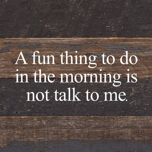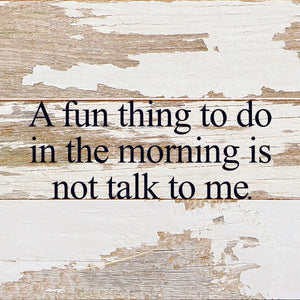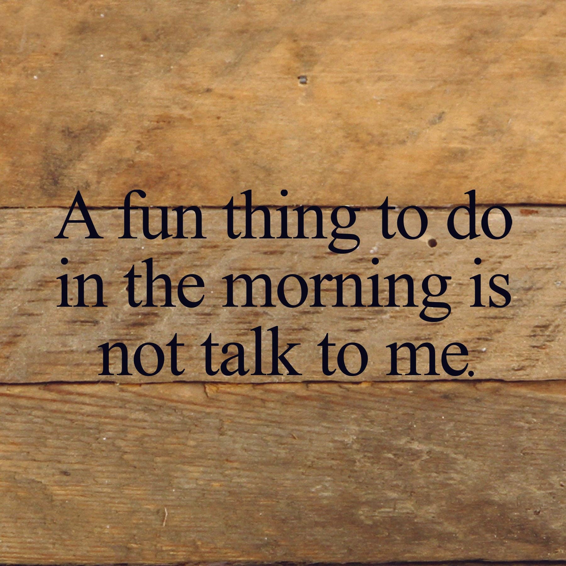 A fun thing to do in the morning is not talk to me. / 6"x6" Reclaimed Wood Sign