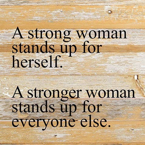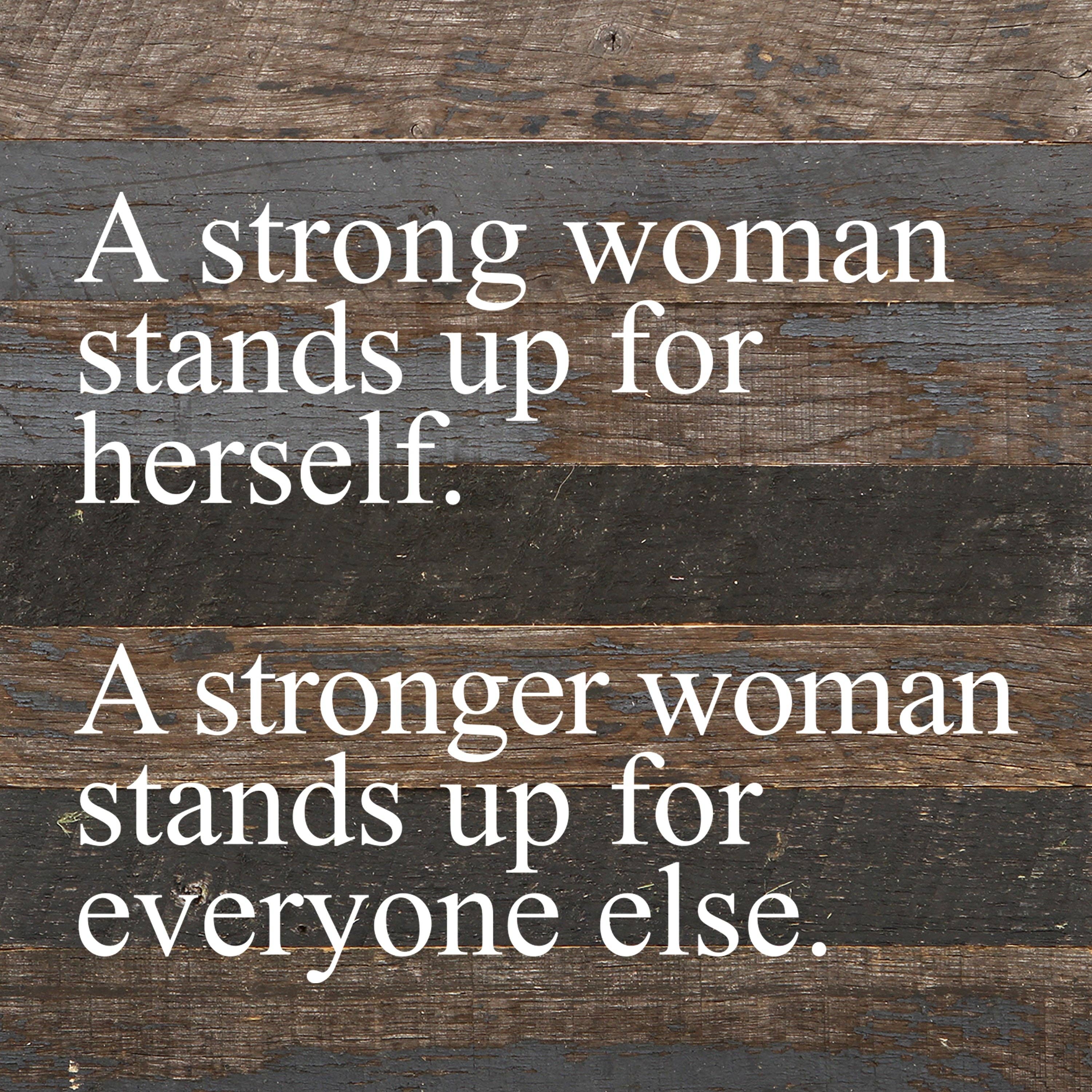 A strong woman stands up for herself. A stronger woman stands up for everyone else. / 10"x10" Reclaimed Wood Sign
