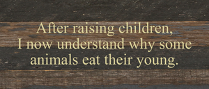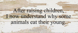 After raising children, I now understand why some animals eat their young. / 14"x6" Reclaimed Wood Sign