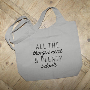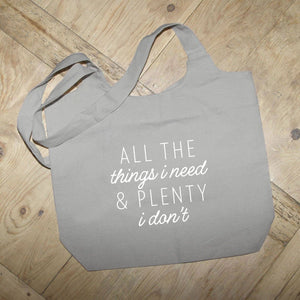 All the thinks I Need and plenty I don't / Grey Tote Bag