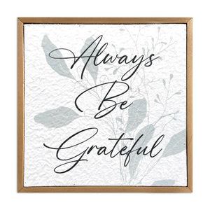 Always be Grateful. 10x10 Pulp Paper Wall Décor. Our collection of pulp paper wall decor is made from textured paper that is designed and printed in house in the United States.