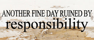 Another fine day ruined by responsibility / 14"x6" Reclaimed Wood Sign