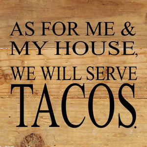 As for me and my house, we will serve tacos. / 6"x6" Reclaimed Wood Sign