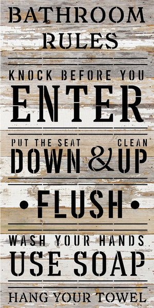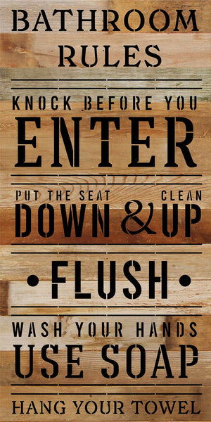 Bathroom Rules: Knock before you enter, flush, put the seat down... / 12x24 Reclaimed Wood Sign