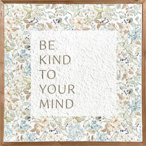 Be kind to your mind 14x14 Pulp Paper Wall Décor. Our collection of pulp paper wall decor is made from textured paper that is designed and printed in house in the United States.