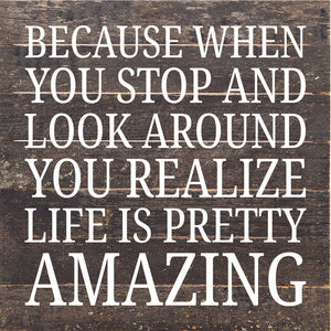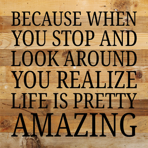 Because When You Stop And Look Around... / 10X10 Reclaimed Wood Sign // Second Nature by Hand product is Made in the USA by skilled craftsmen in IA and WI. We source distressed natural reclaimed materials throughout North America that ensures no two Second Nature by Hand signs in the world are the same. The wood for this sign may have come from a ship yard, old factory or a huge variety of other sources. Buying reclaimed wood products is good for the environment. Due to the reclaimed nature of this product, colors and wood tones/features may vary slightly.