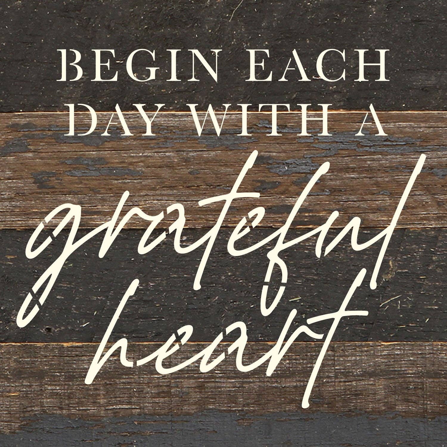 Begin each day with a grateful heart / 6x6 Reclaimed Wood Wall Decor Sign // Second Nature by Hand product is Made in the USA by skilled craftsmen in IA and WI. We source distressed natural reclaimed materials throughout North America that ensures no two Second Nature by Hand signs in the world are the same. The wood for this sign may have come from a ship yard, old factory or a huge variety of other sources. Buying reclaimed wood products is good for the environment. Due to the reclaimed nature of this product, colors and wood tones/features may vary slightly.