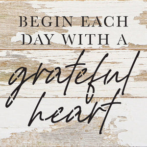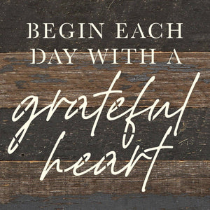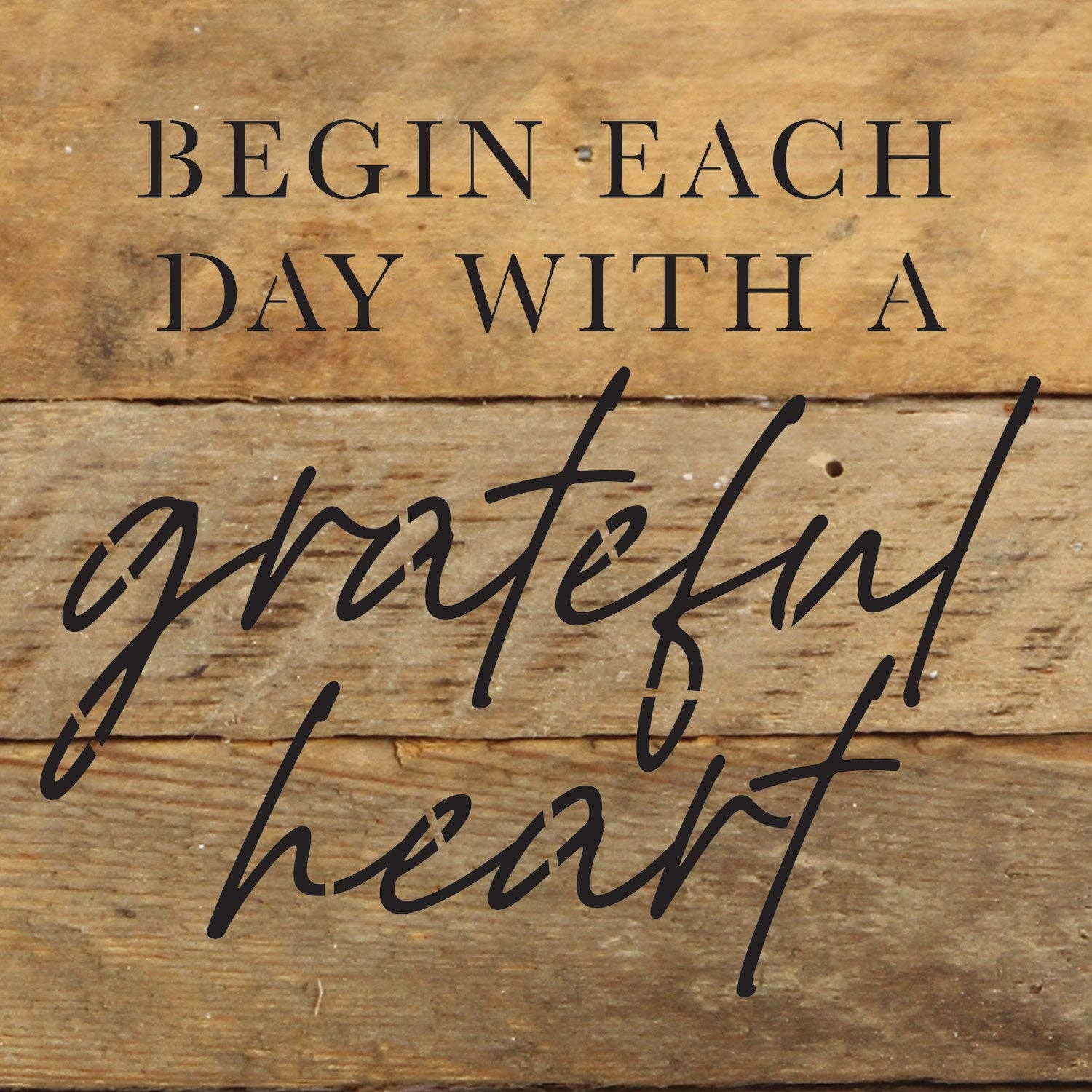 Begin each day with a grateful heart / 6x6 Reclaimed Wood Wall Decor Sign
