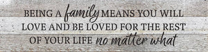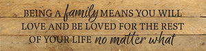 Being a family means you will love.. / 24" x 6" Wood Sign
