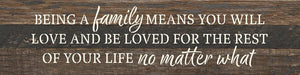 Being a family means you will love and be loved for the rest of your life no matter what 24x6 Reclaimed Wood Wall Decor Sign//24"x6" Reclaimed Wood Sign //Second Nature by Hand product is Made in the USA by skilled craftsmen in WI. We source distressed reclaimed materials throughout North America that ensures no two Second Nature by Hand signs in the world are the same. The wood for this sign may have come from a ship yard, old factory or a huge variety of other sources. Buying reclaimed wood products is good for the environment. Due to the reclaimed nature of this product, colors and wood tones/features may vary slightly.