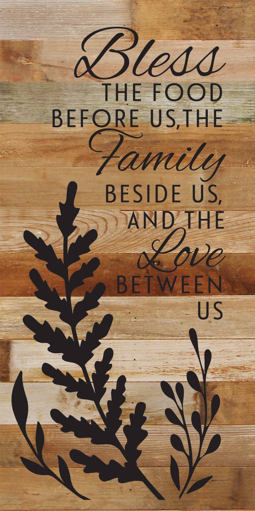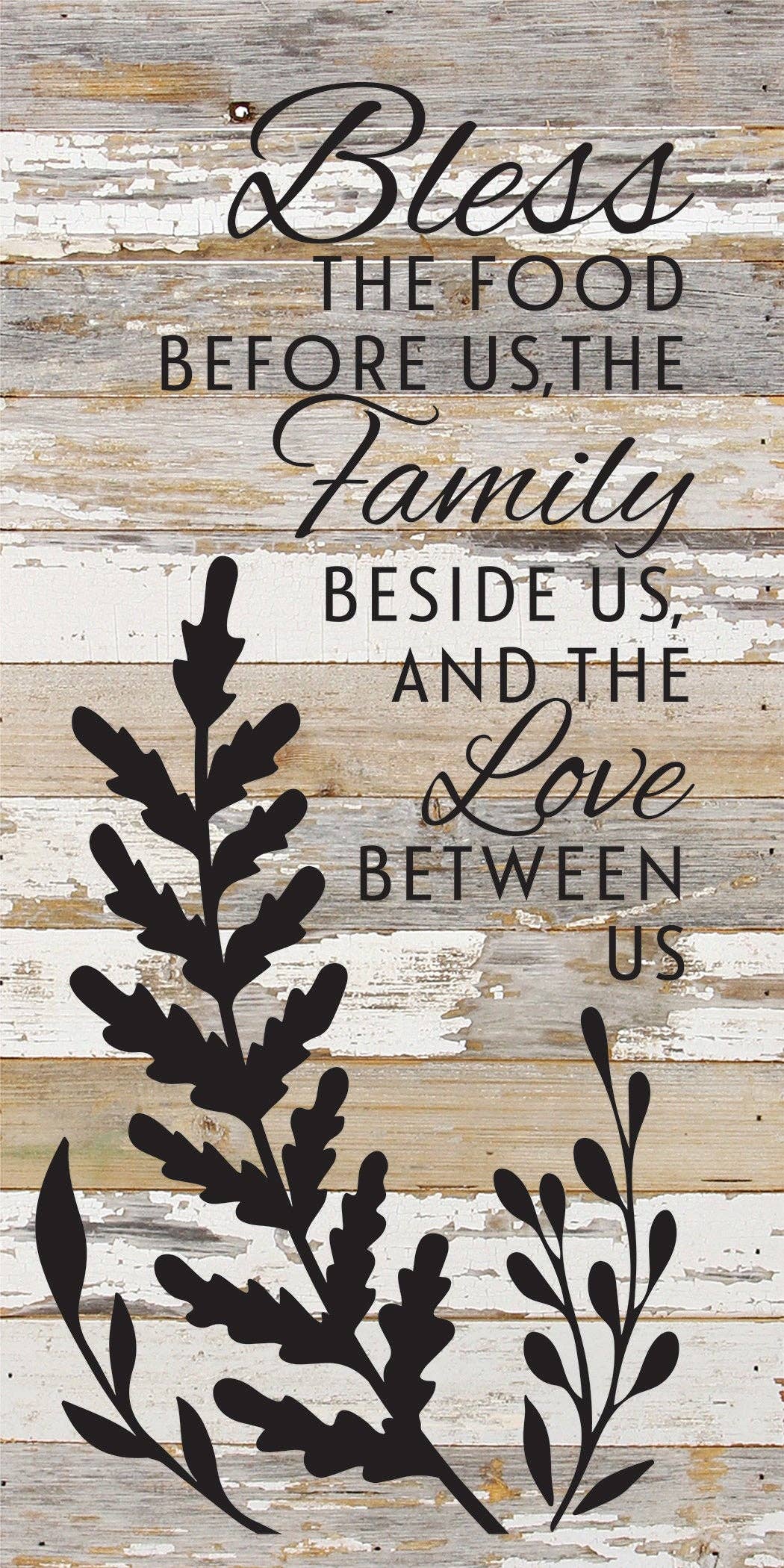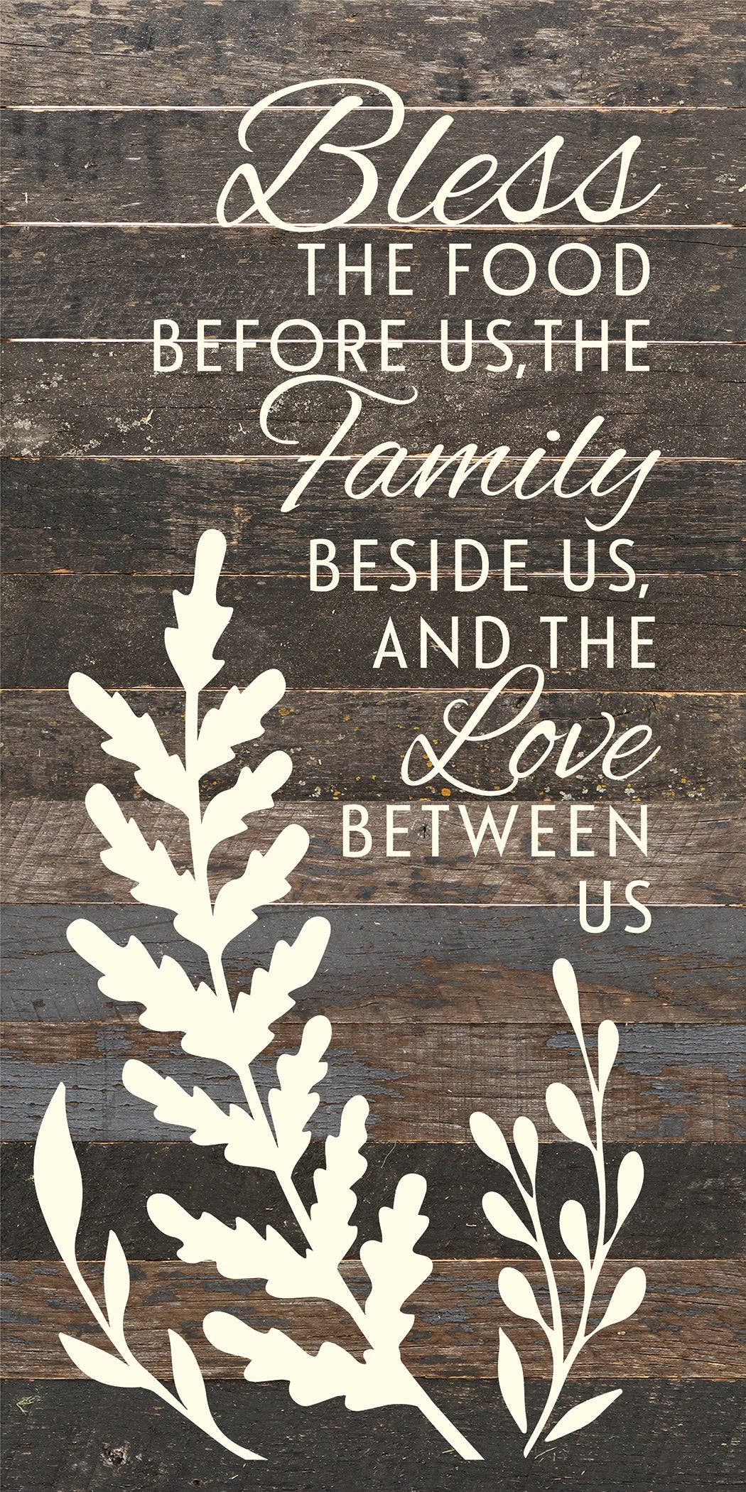 Bless the food before us, the family beside us, and the love between us / 12x24 Reclaimed Wood Sign