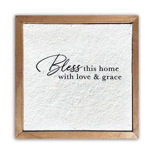 Bless this home with love and grace. 6x6 Pulp Paper Wall Décor. Our collection of pulp paper wall decor is made from textured paper that is designed and printed in house in the United States.