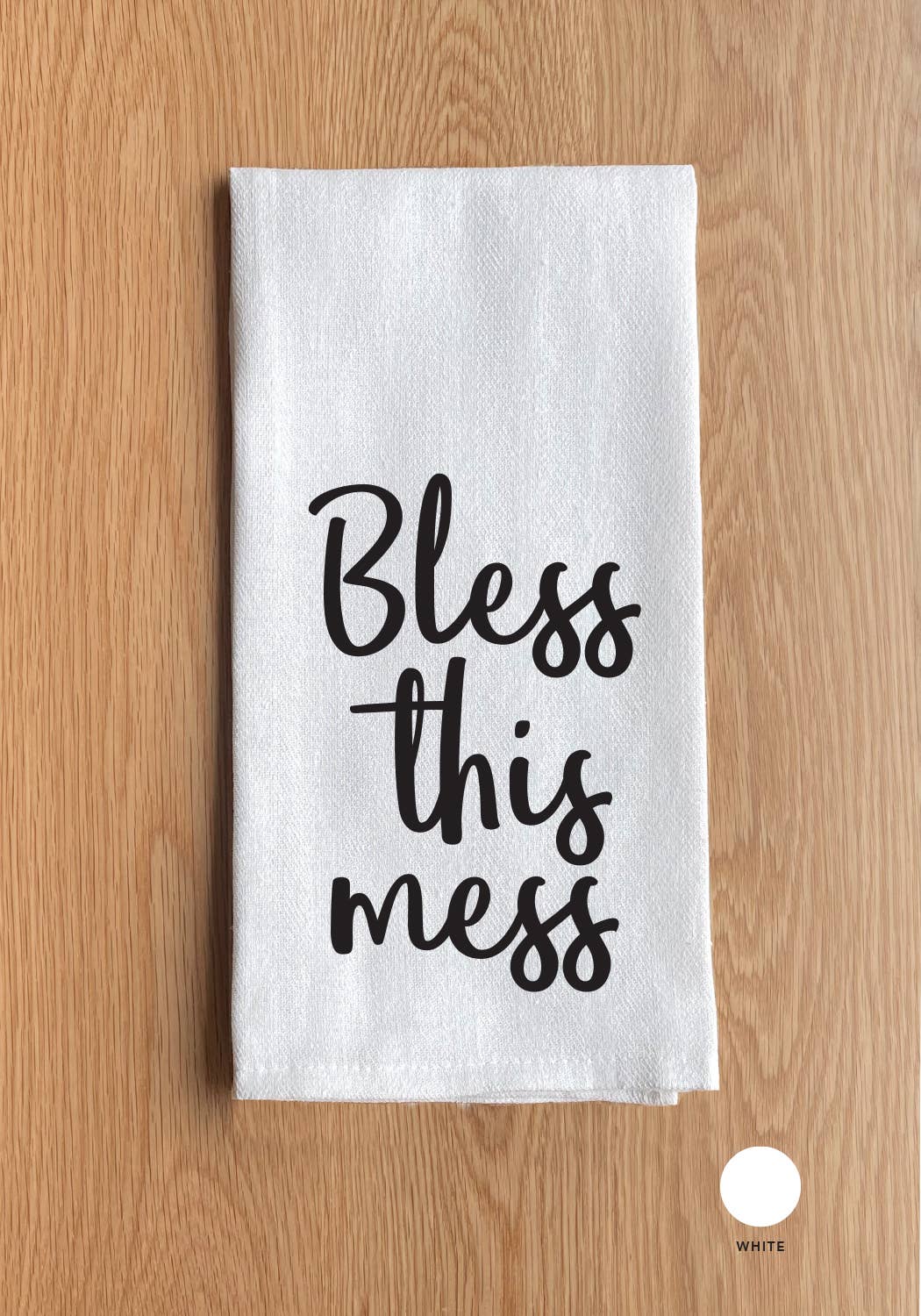 Introducing Second Nature by Hand's Bless this Mess Kitchen Towel. This unique tea towel is not just functional but also carries a piece of history, a soul, and a story. Each piece is handmade with care, reflecting the uniqueness of our limited raw materials. Our items are made to order, with a shipping window of about two weeks. Enjoy a piece of our journey with this kitchen essential.