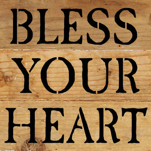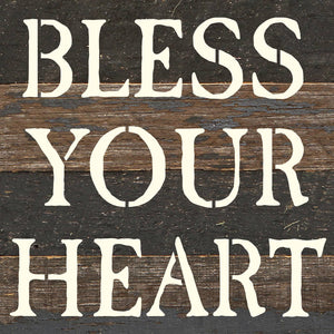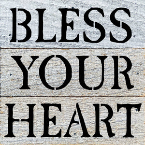 Bless your heart 6x6 Reclaimed Wood Wall DécorSecond Nature by Hand product are Made in the USA by skilled craftsmen in WI. We source distressed reclaimed materials throughout North America that ensures no two Second Nature by Hand signs in the world are the same. The wood for this sign may have come from a ship yard, old factory or a huge variety of other sources. Buying reclaimed wood products is good for the environment. Due to the reclaimed nature of this product, colors and wood tones/features may vary slightly.