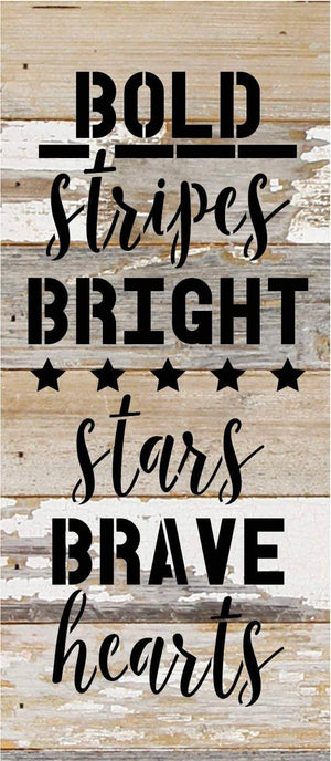 Bold Stripes Bright Stars Brave Hearts / 6"X14" Reclaimed Wood Sign