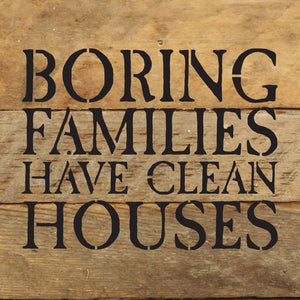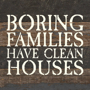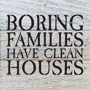 Boring families have clean houses 6x6 Reclaimed Wood Wall Decor Sign//6"x6" Reclaimed Wood Sign //Second Nature by Hand product is Made in the USA by skilled craftsmen in WI. We source distressed reclaimed materials throughout North America that ensures no two Second Nature by Hand signs in the world are the same. The wood for this sign may have come from a ship yard, old factory or a huge variety of other sources. Buying reclaimed wood products is good for the environment. Due to the reclaimed nature of this product, colors and wood tones/features may vary slightly.