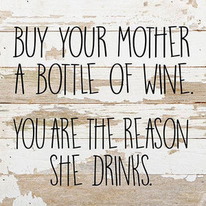 Buy you mother a bottle of wine, you are the reason she drinks. / 10"x10" Reclaimed Wood Sign