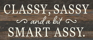 Classy, Sassy, and a bit smary assy / 14x6 Reclaimed Wood Wall Decor // Our products are Made in the USA by skilled craftsmen in IA and WI. We source distressed natural reclaimed materials throughout North America that ensures no two Second Nature by Hand signs in the world are the same. The wood for this sign may have come from a ship yard, old factory or a huge variety of other sources. Buying reclaimed wood products is good for the environment. Due to the reclaimed nature of this product, colors and wood tones/features may vary slightly.