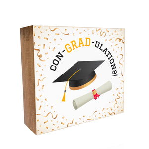 Con-Grad-ulations! Grad Cap Decorative Wood Block