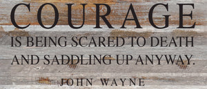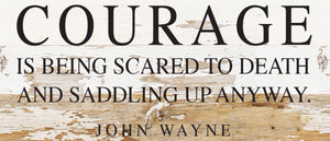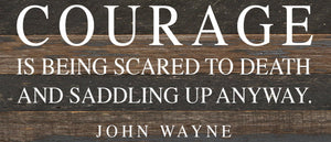 COURAGE is being scared to death and saddling up anyway. ~ John Wayne / 14"x6" Reclaimed Wood Sign