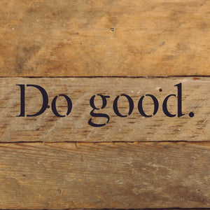 Do Good / 6"x6" Reclaimed Wood Sign // Second Nature by Hand product is Made in the USA by skilled craftsmen in IA and WI. We source distressed natural reclaimed materials throughout North America that ensures no two Second Nature by Hand signs in the world are the same. The wood for this sign may have come from a ship yard, old factory or a huge variety of other sources. Buying reclaimed wood products is good for the environment. Due to the reclaimed nature of this product, colors and wood tones/features may vary slightly.