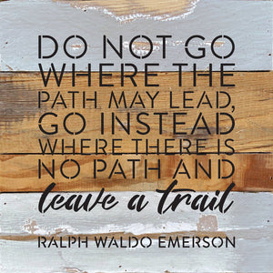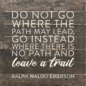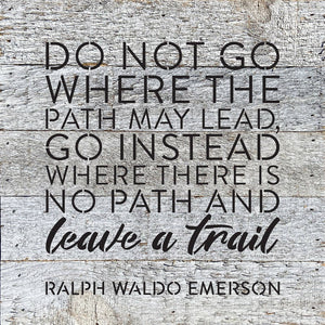 Do not go where the path may lead. Go instead where there is no path and leave a trail - Ralp Waldo Emerson 10x10 Reclaimed Wood Wall Décor//10"x10" Reclaimed Wood Sign //Second Nature by Hand product is Made in the USA by skilled craftsmen in WI. We source distressed reclaimed materials throughout North America that ensures no two Second Nature by Hand signs in the world are the same. The wood for this sign may have come from a ship yard, old factory or a huge variety of other sources. Buying reclaimed wood products is good for the environment. Due to the reclaimed nature of this product, colors and wood tones/features may vary slightly.