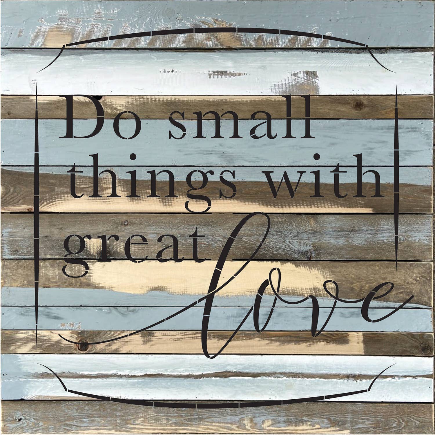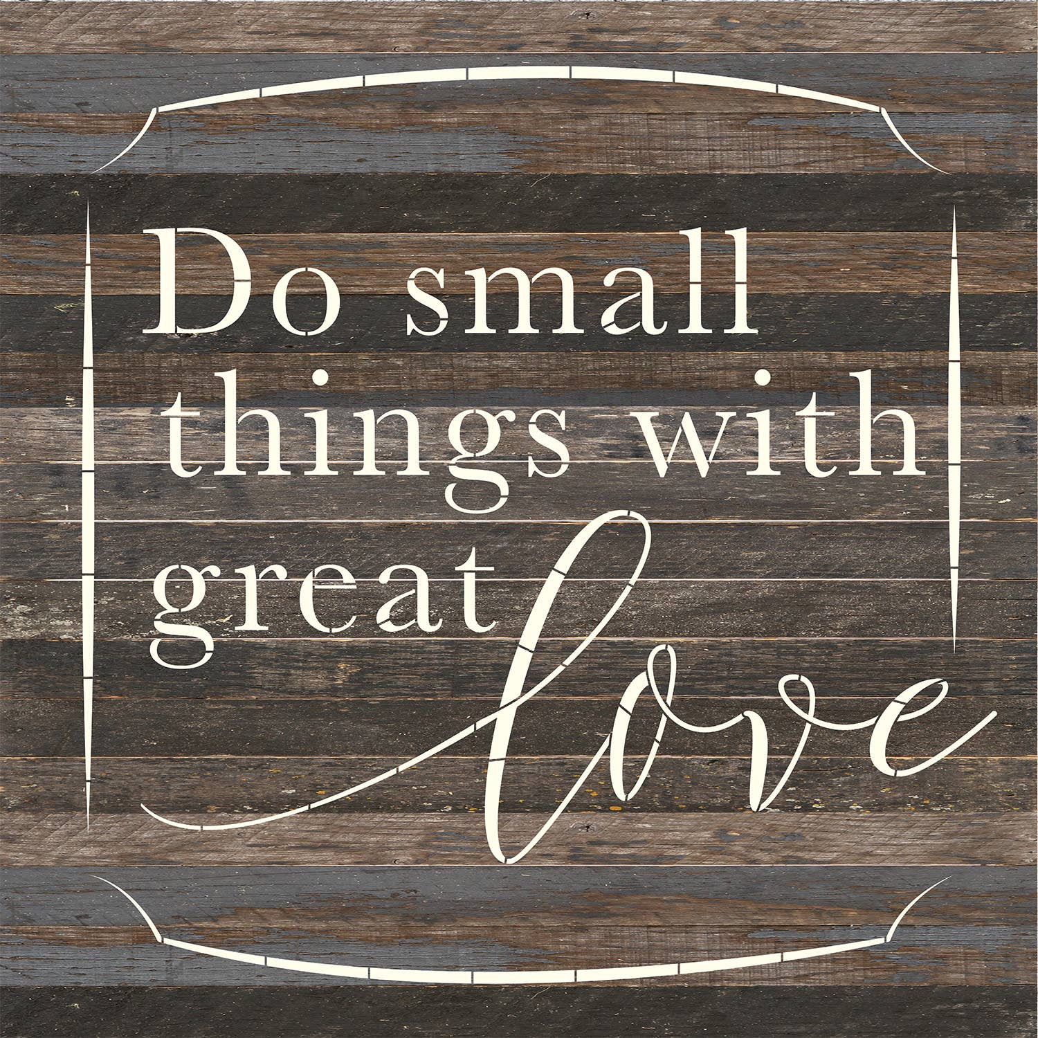 Do small things with great love 28x28 Reclaimed Wood Sign Second Nature by Hand product are Made in the USA by skilled craftsmen in WI. We source distressed reclaimed materials throughout North America that ensures no two Second Nature by Hand signs in the world are the same. The wood for this sign may have come from a ship yard, old factory or a huge variety of other sources. Buying reclaimed wood products is good for the environment. Due to the reclaimed nature of this product, colors and wood tones/features may vary slightly.