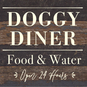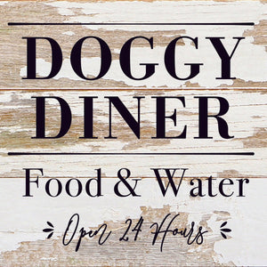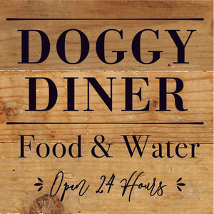 Doggy Diner: Food & Water, Open 24 Hours / 6x6 Reclaimed Wood Sign