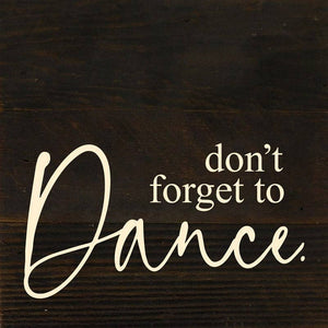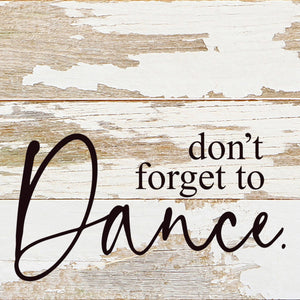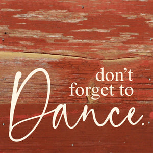 Don't forget to dance. / 6"x6" Reclaimed Wood Sign // Second Nature by Hand product is Made in the USA by skilled craftsmen in IA and WI. We source distressed natural reclaimed materials throughout North America that ensures no two Second Nature by Hand signs in the world are the same. The wood for this sign may have come from a ship yard, old factory or a huge variety of other sources. Buying reclaimed wood products is good for the environment. Due to the reclaimed nature of this product, colors and wood tones/features may vary slightly.