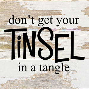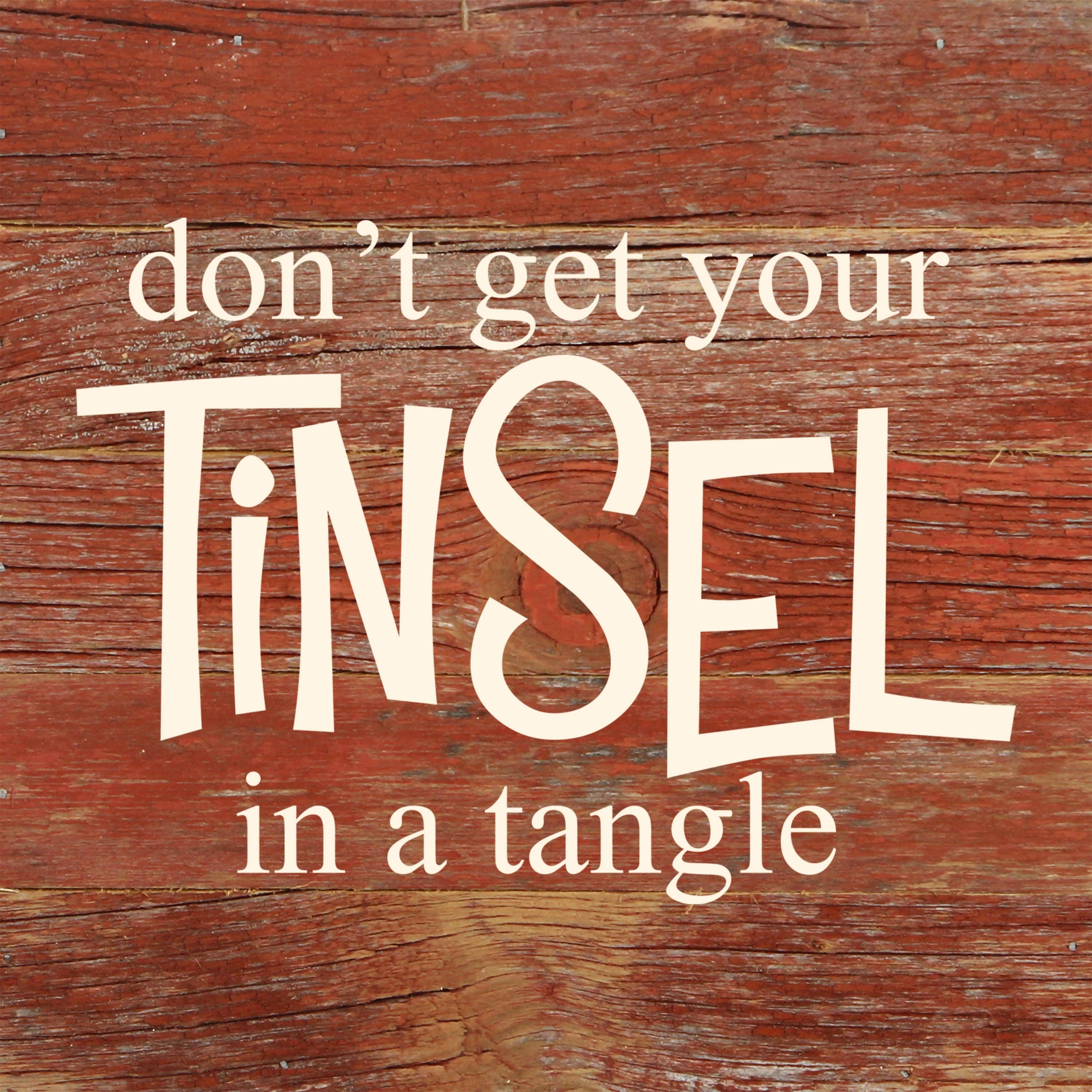 Don't get your tinsel in a tangle / 6"x6" Reclaimed Wood Sign // Second Nature by Hand product is Made in the USA by skilled craftsmen in IA and WI. We source distressed natural reclaimed materials throughout North America that ensures no two Second Nature by Hand signs in the world are the same. The wood for this sign may have come from a shipyard, old factory or a huge variety of other sources. Buying reclaimed wood products is good for the environment.