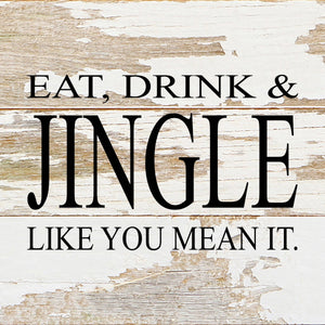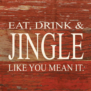 Eat, drink & jingle like you mean it. / 6"x6" Reclaimed Wood Sign