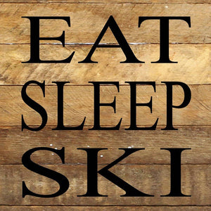 Eat sleep ski / 10"x10" Reclaimed Wood Sign // Second Nature by Hand product is Made in the USA by skilled craftsmen in IA and WI. We source distressed natural reclaimed materials throughout North America that ensures no two Second Nature by Hand signs in the world are the same. The wood for this sign may have come from a ship yard, old factory or a huge variety of other sources. Buying reclaimed wood products is good for the environment. Due to the reclaimed nature of this product, colors and wood tones/features may vary slightly.