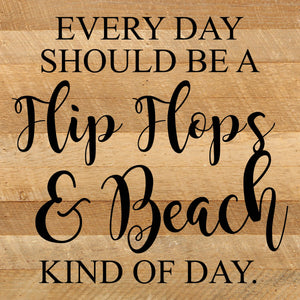 Every day should be flip flops & beach kind of day. / 10"x10" Reclaimed Wood Sign // Second Nature by Hand product is Made in the USA by skilled craftsmen in IA and WI. We source distressed natural reclaimed materials throughout North America that ensures no two Second Nature by Hand signs in the world are the same. The wood for this sign may have come from a ship yard, old factory or a huge variety of other sources. Buying reclaimed wood products is good for the environment. Due to the reclaimed nature of this product, colors and wood tones/features may vary slightly.