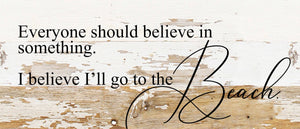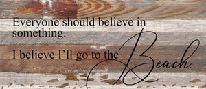 Everyone should believe in something. I believe I'll go to the beach. / 14"x6" Reclaimed Wood Sign