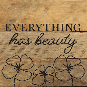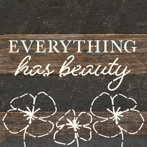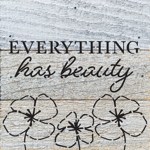 Everything has beauty 6x6 Reclaimed Wood Wall Décor. Second Nature by Hand product are Made in the USA by skilled craftsmen in WI. We source distressed reclaimed materials throughout North America that ensures no two Second Nature by Hand signs in the world are the same. The wood for this sign may have come from a ship yard, old factory or a huge variety of other sources. Buying reclaimed wood products is good for the environment. Due to the reclaimed nature of this product, colors and wood tones/features may vary slightly