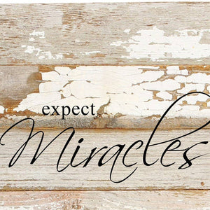 Expect miracles. / 6"x6" Reclaimed Wood Sign // Second Nature by Hand product is Made in the USA by skilled craftsmen in IA and WI. We source distressed natural reclaimed materials throughout North America that ensures no two Second Nature by Hand signs in the world are the same. The wood for this sign may have come from a shipyard, old factory or a huge variety of other sources. Buying reclaimed wood products is good for the environment.