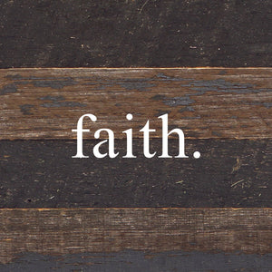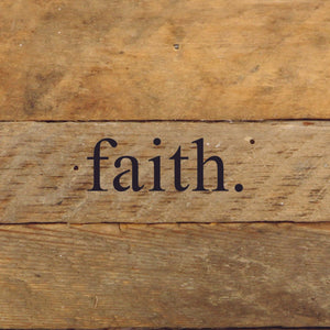 faith / 6"x6" Reclaimed Wood Sign // Second Nature by Hand product is Made in the USA by skilled craftsmen in IA and WI. We source distressed natural reclaimed materials throughout North America that ensures no two Second Nature by Hand signs in the world are the same. The wood for this sign may have come from a ship yard, old factory or a huge variety of other sources. Buying reclaimed wood products is good for the environment. Due to the reclaimed nature of this product, colors and wood tones/features may vary slightly.