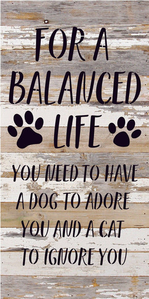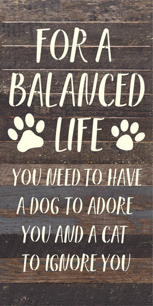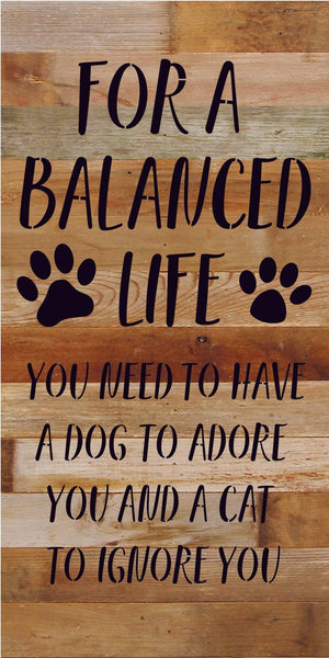 For a balanced life you need to have a dog to adore you and a cat to ignore you / 14x24 Reclaimed Wood Sign