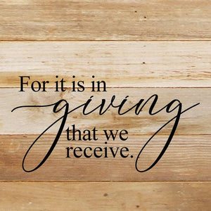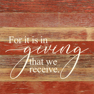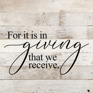 For it is in giving that we receive. / 10"x10" Reclaimed Wood Sign