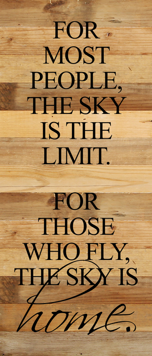 For most people, the sky is the limit. For those who fly, the sky is home. / 6"x14" Reclaimed Wood Sign