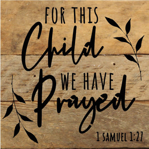 For this child we have prayed 1 Samuel 1:27 / 6x6 Reclaimed Wood Sign