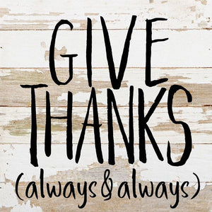 Give Thanks (always & always) / 10"x10" Reclaimed Wood Sign // Second Nature by Hand product is Made in the USA by skilled craftsmen in IA and WI. We source distressed natural reclaimed materials throughout North America that ensures no two Second Nature by Hand signs in the world are the same. The wood for this sign may have come from a ship yard, old factory or a huge variety of other sources. Buying reclaimed wood products is good for the environment. Due to the reclaimed nature of this product, colors and wood tones/features may vary slightly.