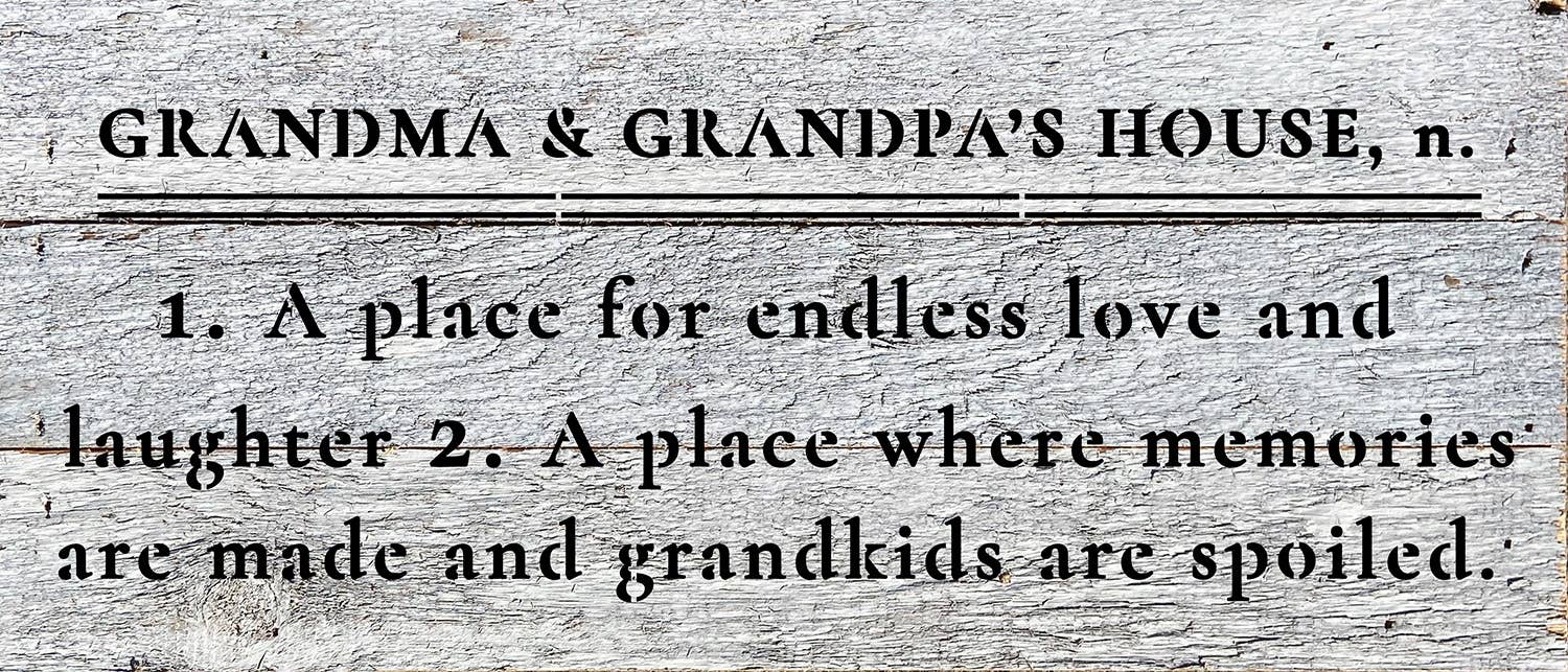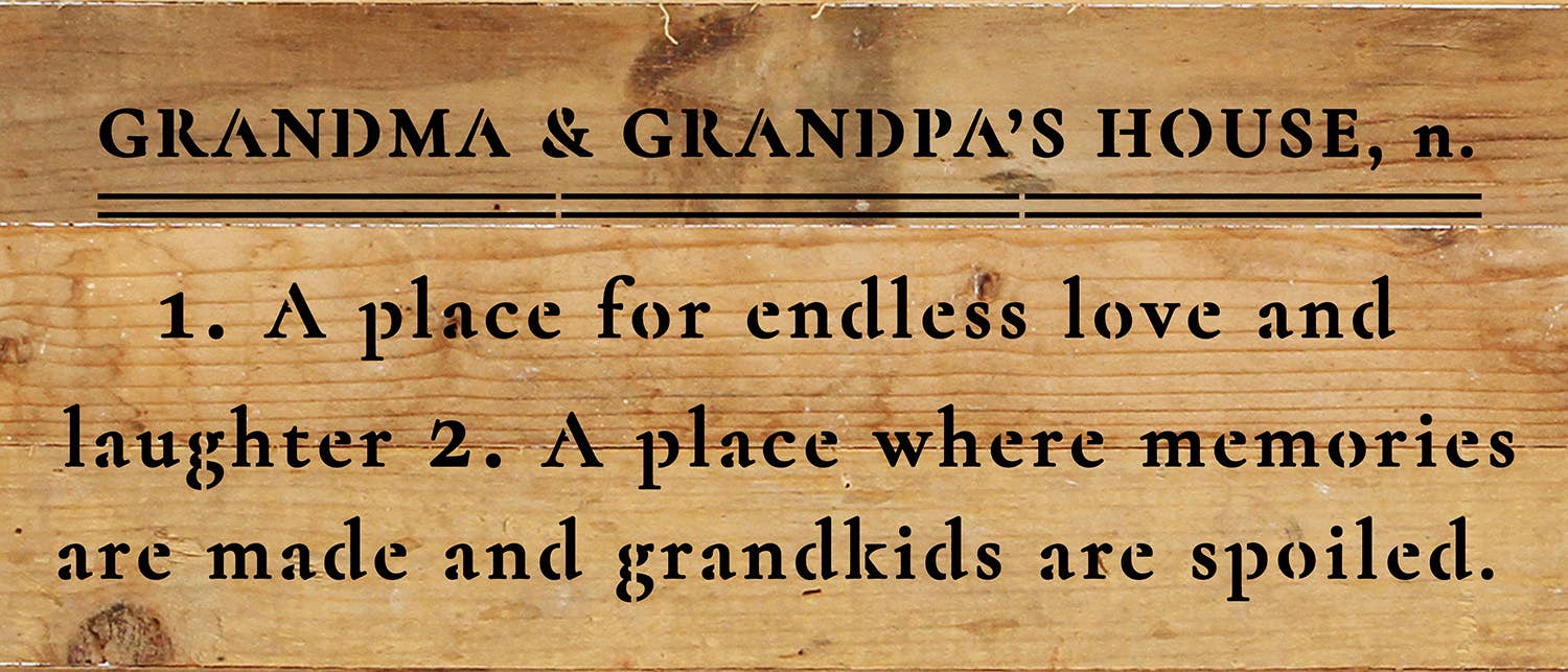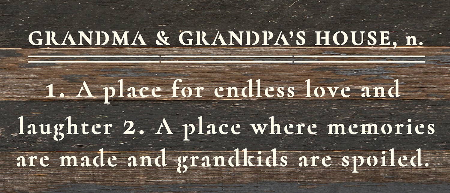 Grandma and Grandpa's House definition 6x14 Reclaimed Wood Wall Décor. Second Nature by Hand product are Made in the USA by skilled craftsmen in WI. We source distressed reclaimed materials throughout North America that ensures no two Second Nature by Hand signs in the world are the same. The wood for this sign may have come from a ship yard, old factory or a huge variety of other sources. Buying reclaimed wood products is good for the environment. Due to the reclaimed nature of this product, colors and wood tones/features may vary slightly.