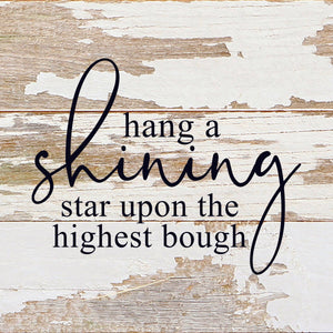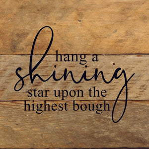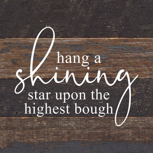 Hang a shining star upon the highest bough / 6"x6" Reclaimed Wood Sign // Second Nature by Hand product is Made in the USA by skilled craftsmen in IA and WI. We source distressed natural reclaimed materials throughout North America that ensures no two Second Nature by Hand signs in the world are the same. The wood for this sign may have come from a ship yard, old factory or a huge variety of other sources. Buying reclaimed wood products is good for the environment. Due to the reclaimed nature of this product, colors and wood tones/features may vary slightly.