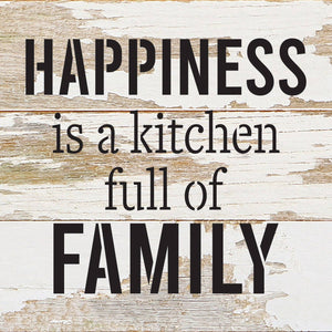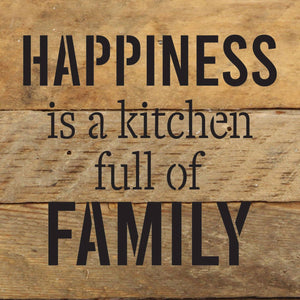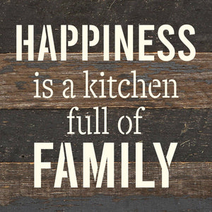 Happiness is a kitchen full of family / 6x6 Reclaimed Wood Wall Decor Sign // Second Nature by Hand product is Made in the USA by skilled craftsmen in IA and WI. We source distressed natural reclaimed materials throughout North America that ensures no two Second Nature by Hand signs in the world are the same. The wood for this sign may have come from a ship yard, old factory or a huge variety of other sources. Buying reclaimed wood products is good for the environment. Due to the reclaimed nature of this product, colors and wood tones/features may vary slightly.
