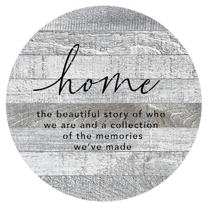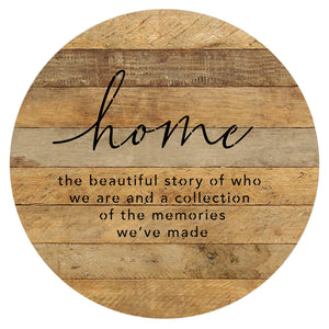 Home the beautiful story of who we are and a collection of the memories we've made 16in Round Reclaimed Wood Wall Décor//16" Reclaimed Wood Sign //Second Nature by Hand product is Made in the USA by skilled craftsmen in WI. We source distressed reclaimed materials throughout North America that ensures no two Second Nature by Hand signs in the world are the same. The wood for this sign may have come from a ship yard, old factory or a huge variety of other sources. Buying reclaimed wood products is good for the environment. Due to the reclaimed nature of this product, colors and wood tones/features may vary slightly.