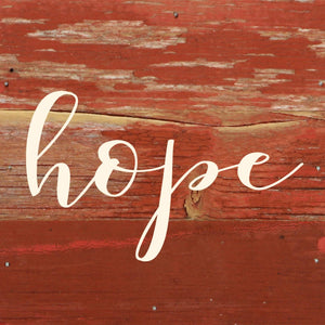 Hope (script) / 6"x6" Reclaimed Wood Sign // Second Nature by Hand product is Made in the USA by skilled craftsmen in IA and WI. We source distressed natural reclaimed materials throughout North America that ensures no two Second Nature by Hand signs in the world are the same. The wood for this sign may have come from a ship yard, old factory or a huge variety of other sources. Buying reclaimed wood products is good for the environment. Due to the reclaimed nature of this product, colors and wood tones/features may vary slightly.